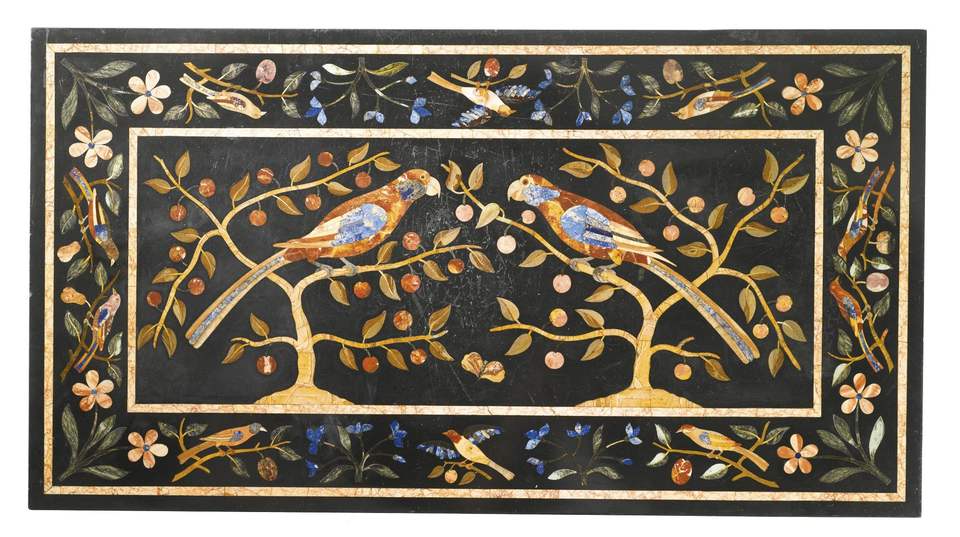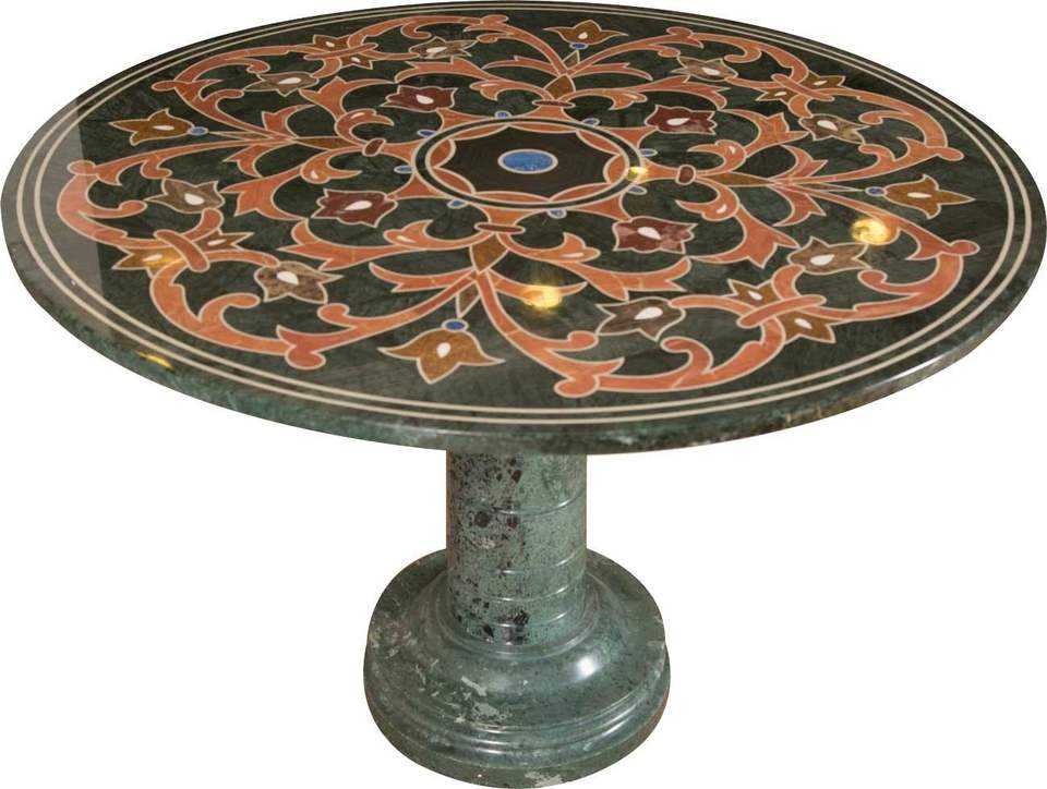 โต๊ะกาแฟหินอ่อนทรงกลมและสี่เหลี่ยมผืนผ้า พร้อมลายฝังหิน Pietra Dura ที่ทนทาน ดีไซน์ร่วมสมัย ปรับแต่งได้สำหรับเฟอร์นิเจอร์ภายในบ้าน