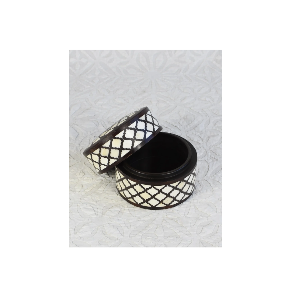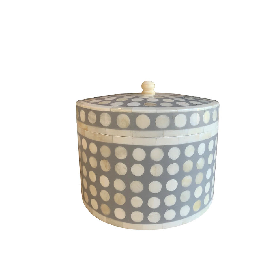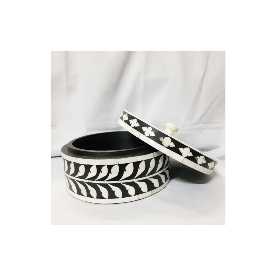 กล่องเครื่องประดับ MDF เรซิ่นทรงกลมและฝังกระดูกสำหรับผู้หญิงเป็นของขวัญ
