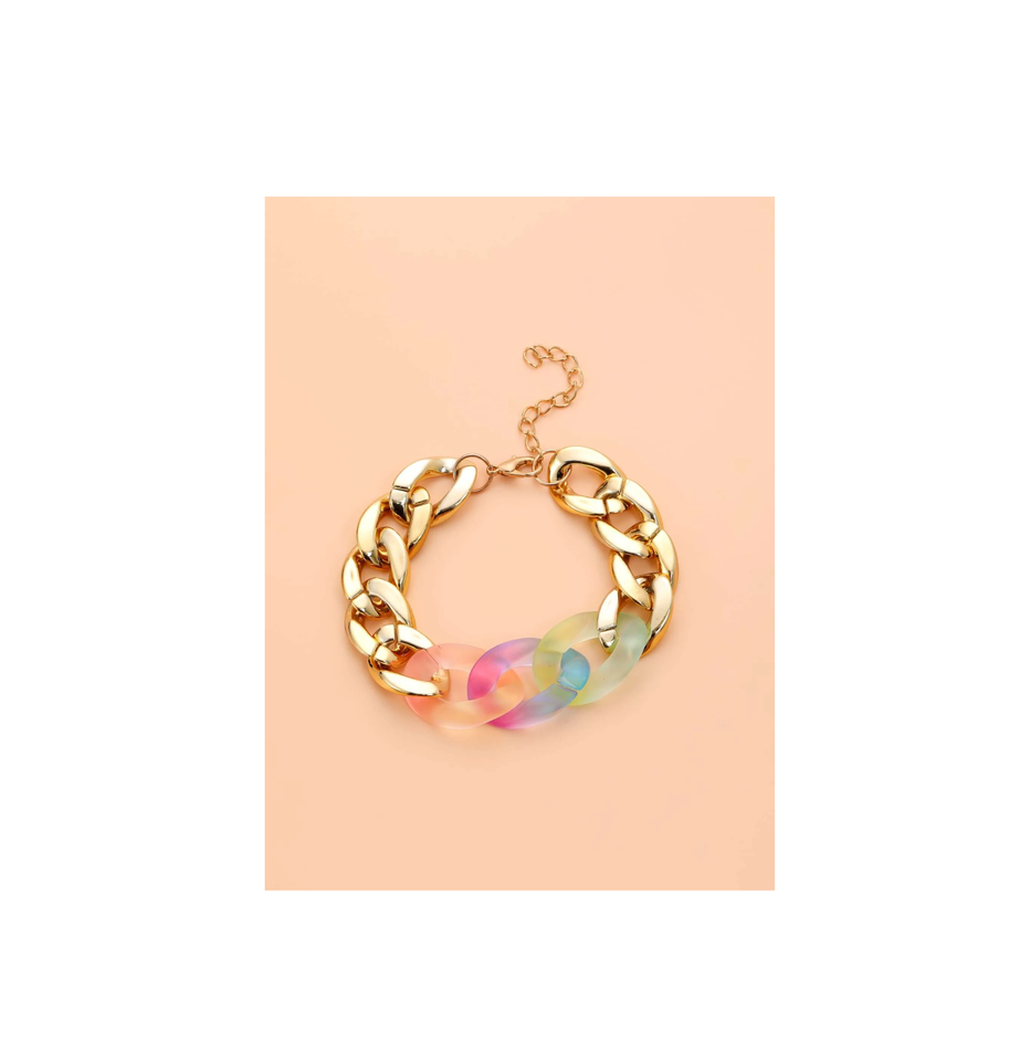 สร้อยข้อมือเรซินกลมหลากสีสดใสยาวขนาดใหญ่สร้อยข้อมือโซ่คิวบาขายส่ง 3 สีที่แตกต่างกันสีชมพูและสีขาวสีฟ้า
