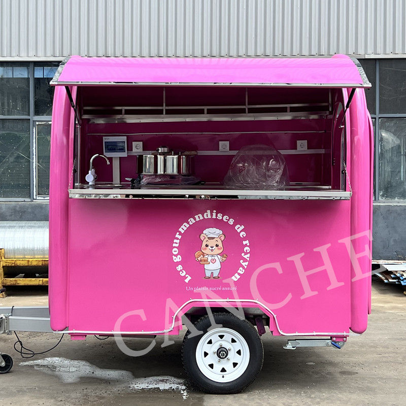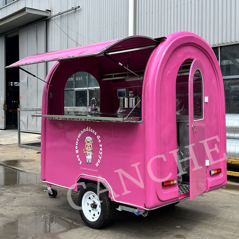 รถแทรลเลอร์รถบรรทุกอาหารเคลื่อนที่อุปกรณ์ข้าวสาลีแบบเคลื่อนที่สำหรับร้านอาหารร้านอาหารทรงกลม