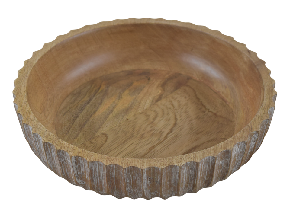 Round Rustic Wooden Bowl with Whitewashed Edge