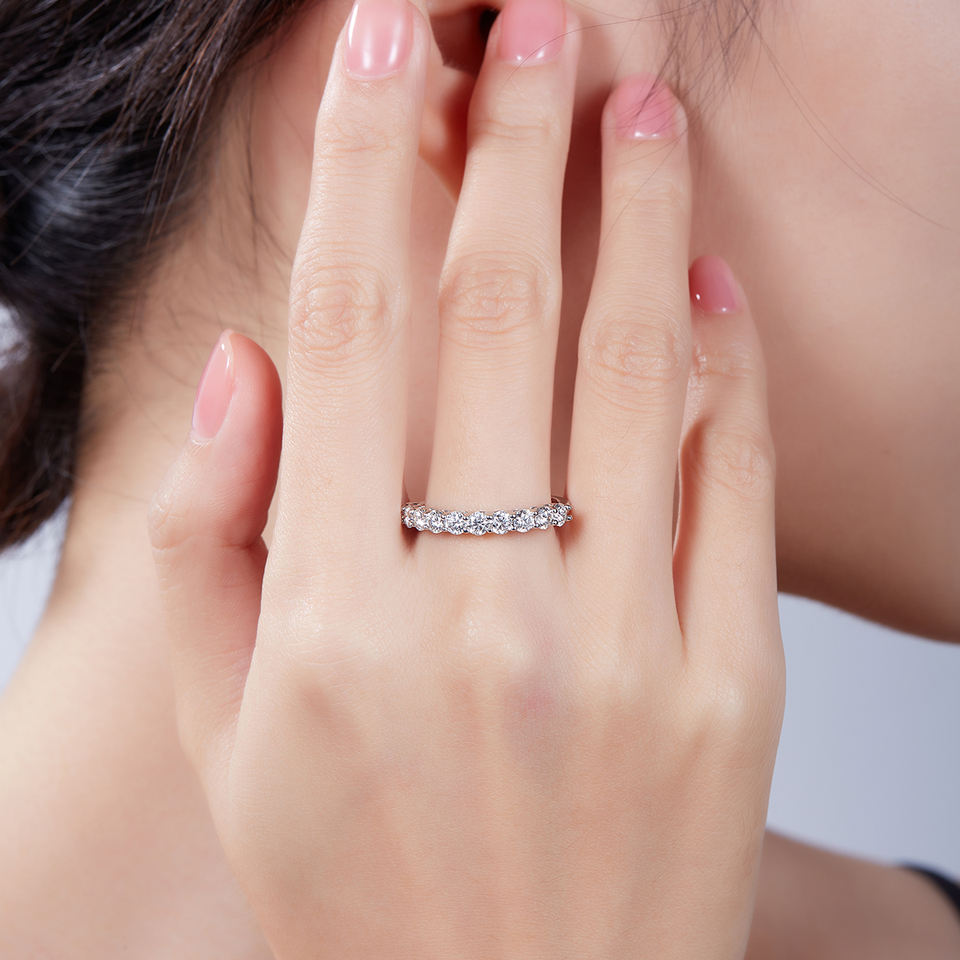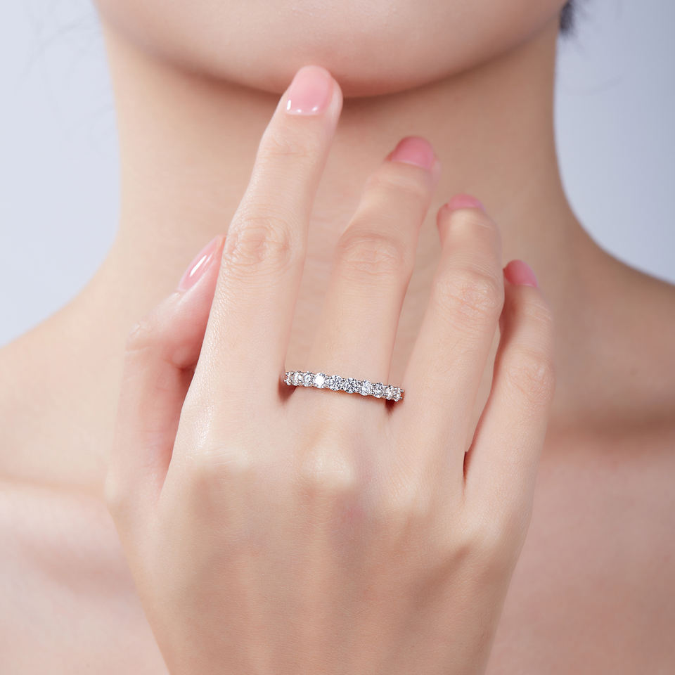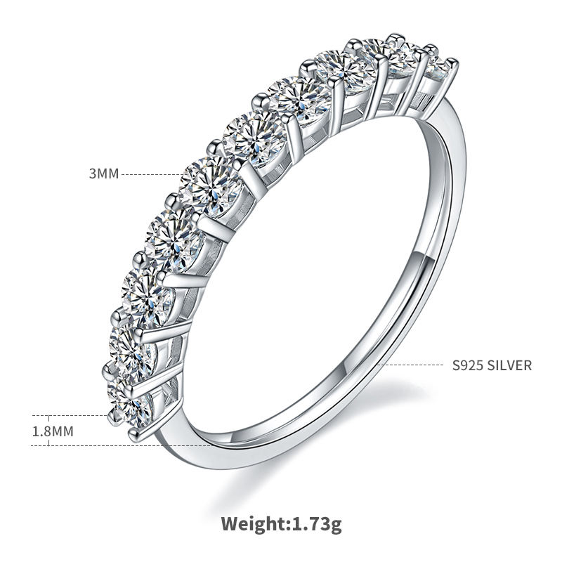แหวนผู้หญิงประดับเพชรโมอิส1.0กะรัตชุบทองคำขาวและเงิน S925ทรงกลม