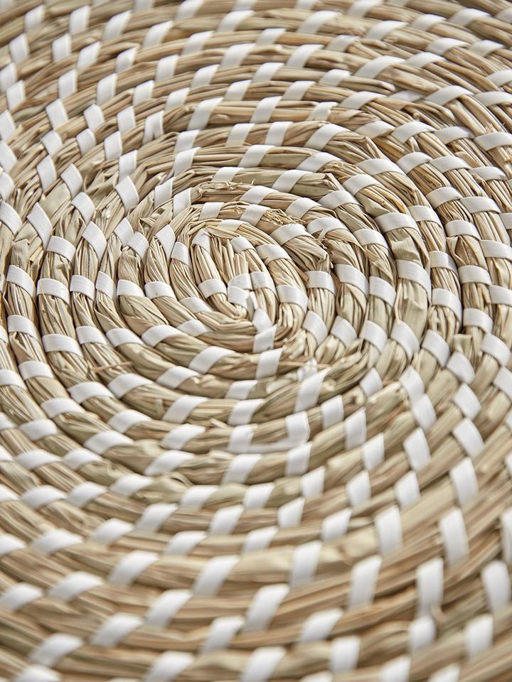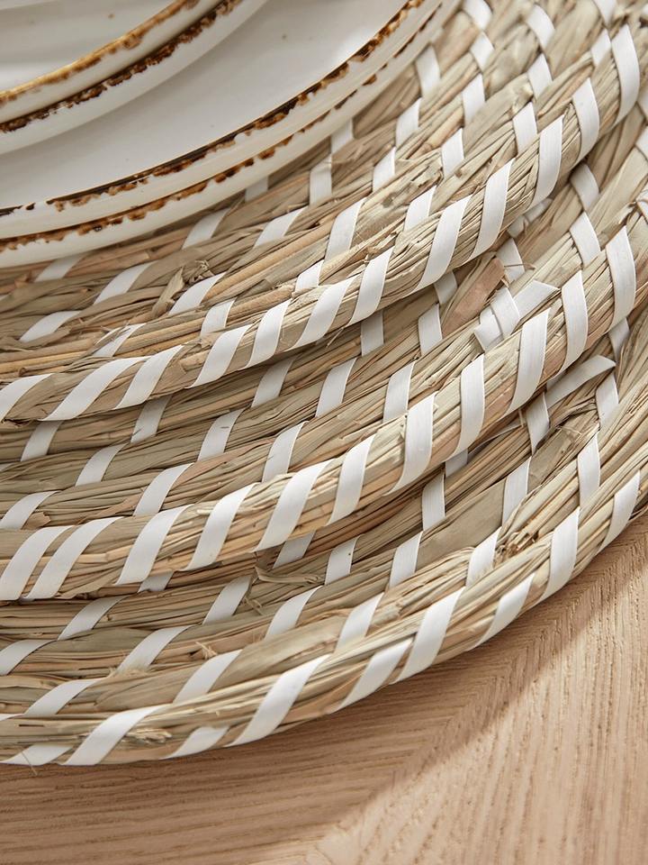 แผ่นรองจานหญ้าทะเลทรงกลมสีขาวเป็นมิตรต่อสิ่งแวดล้อมสินค้าทำจากแผ่นรองจานของตกแต่งโต๊ะในเวียดนามขายส่ง