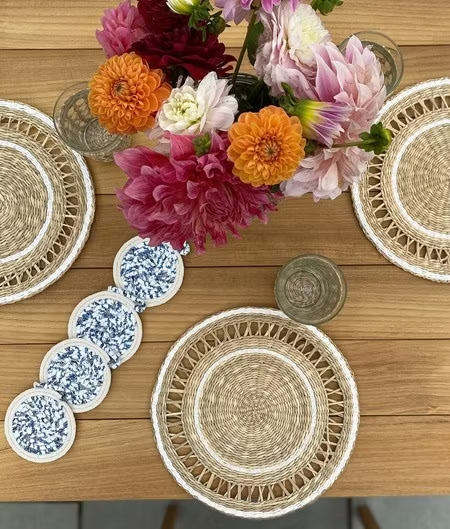 แผ่นรองจานหญ้าทะเลทรงกลม6เส้นย้อมสีแบบกำหนดเองผลิตภัณฑ์ที่เป็นมิตรต่อสิ่งแวดล้อมทำจากเวียดนามขายส่ง