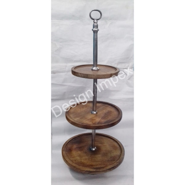 ถาดเสิร์ฟทรงกลมถาดไม้วางผลไม้ชั้นวางเค้ก2ชั้นเป็นมิตรต่อสิ่งแวดล้อมสำหรับงานเลี้ยงวันเกิดของตกแต่ง