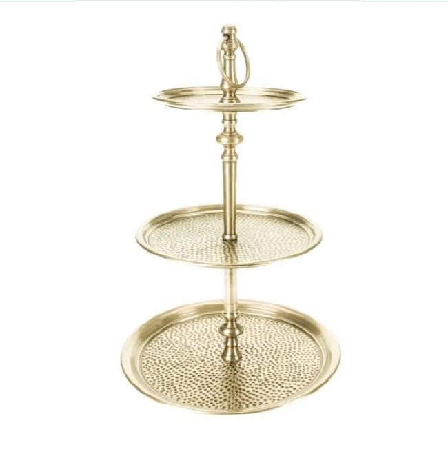 ขาตั้งเค้กอลูมิเนียมทรงกลม2ชั้นสำหรับวางช็อคโกแลตสีทองปรับขนาดได้
