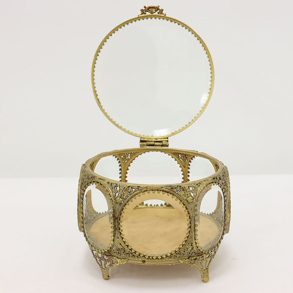 Round Shape Brass Border Clear Glass Beveled Glass Box Custom Size Ring Accessories Storage Box Lowest Price Glass Box