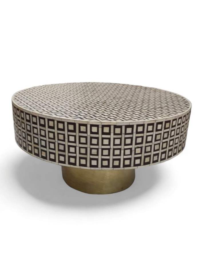 โต๊ะกาแฟทรงกลมสินค้าดีที่สุดโต๊ะกาแฟฝังกระดูกทำมือสำหรับตกแต่งบ้านโต๊ะฝังกระดูก