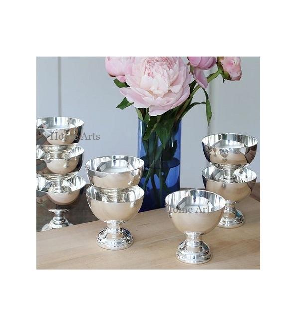 ถ้วยไอศกรีมสแตนเลสสีเงินสำหรับใช้ในบ้านและโรงแรมถ้วยขนมหวานขนาดสั่งทำทรงกลม