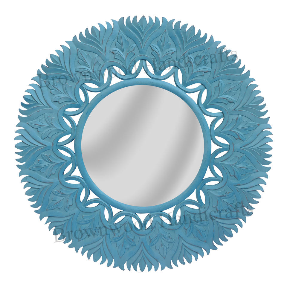 กรอบกระจกแกะสลักทำจากไม้แบบติดผนังทรงกลมสไตล์โบราณกรอบกระจกสำหรับแต่งตัวดูหรูหรา