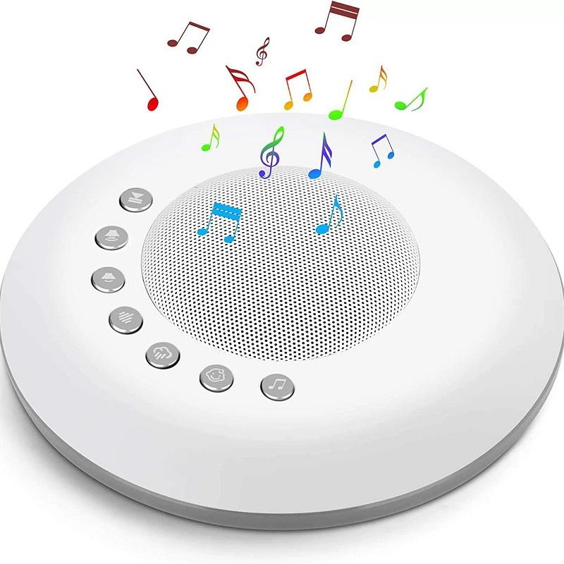 เครื่องเสียงช่วยนอนหลับแบบพกพา รูปทรงพัดลมกลม สีขาว พร้อมไฟกลางคืน ตั้งเวลาปิดอัตโนมัติ และฟังก์ชั่นบันทึกความจำ