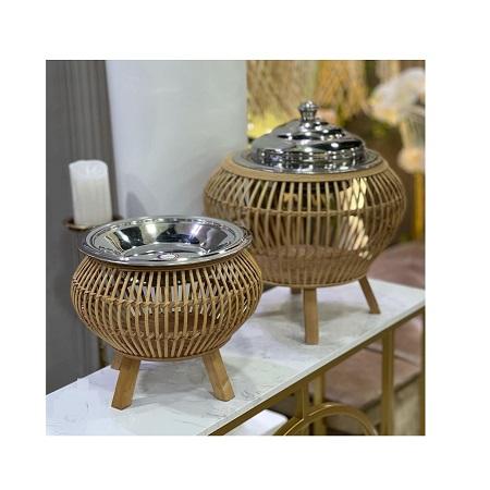 จานเสิร์ฟอาหารทรงกลมพร้อมขาตั้งไม้ชุดจานเสิร์ฟอาหารแฮนด์เมด 3 ชิ้นสําหรับใช้ในบ้านโรงแรม
