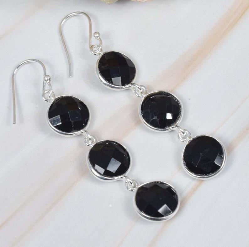 เครื่องประดับทำด้วยมือทรงกลมต่างหูสีดำนิล925เงินสเตอร์ลิงต่างหูตะขออัญมณีของขวัญวันเกิดสำหรับคริสต์มาส