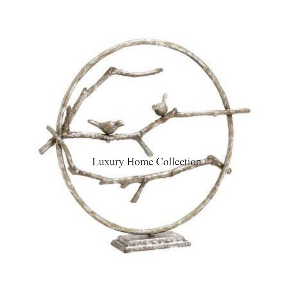 รูปปั้นขัดเงาสีเงินพร้อมฐานสีดำรูปนกโลหะรูปทรงกลมทนทานต่อการใช้งาน