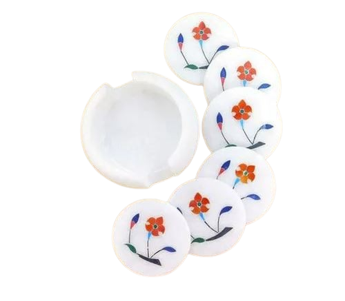 ชุดที่รองแก้วตกแต่งโต๊ะหินแบบฝังหินอ่อนทรงกลมพร้อมขาตั้งเครื่องครัวแบบใหม่