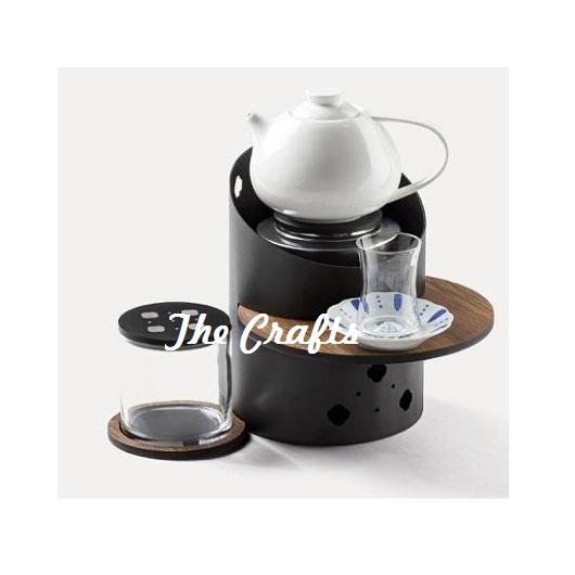 เครื่องทำความร้อนโลหะ Dallah รูปทรงกลมตั้งโต๊ะสีฟ้าอุปกรณ์เสริมสำหรับหม้อกาแฟ Dallah