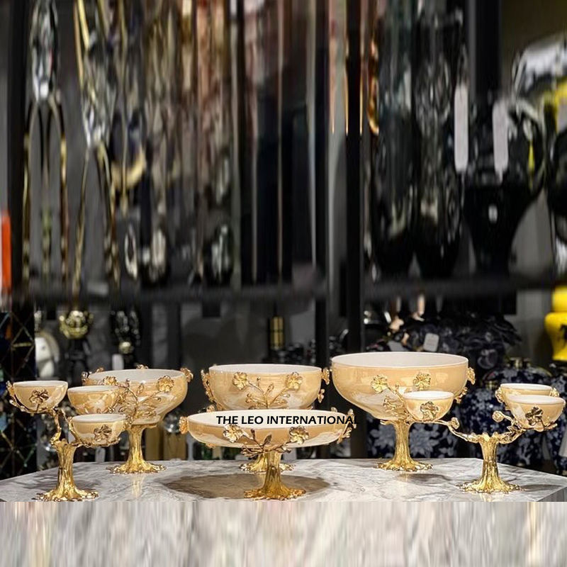 ชามเสิร์ฟเคลือบทองโลหะรูปทรงกลมเนื้อจระเข้สำหรับรับประทานอาหารสไตล์ญี่ปุ่นสำหรับบ้านและโรงแรม