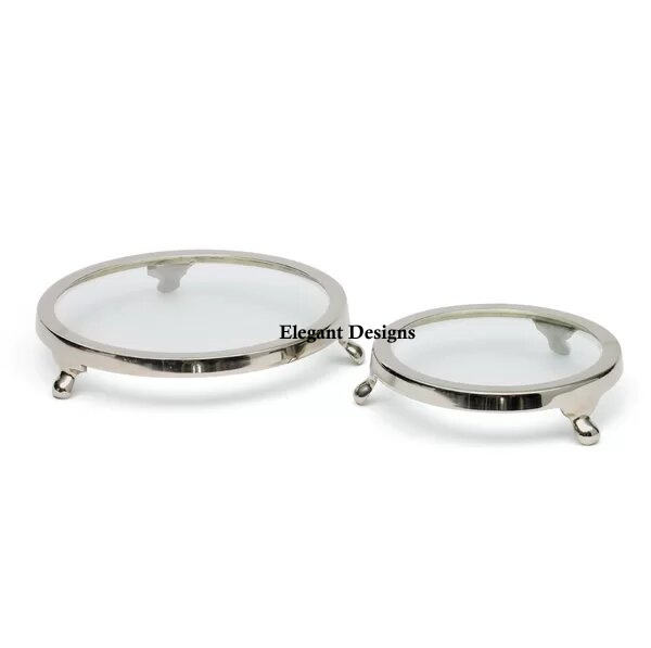 ชุดแท่นวางเค้กโลหะเคลือบกระจกทรงกลมทำด้วยมือสองชิ้น