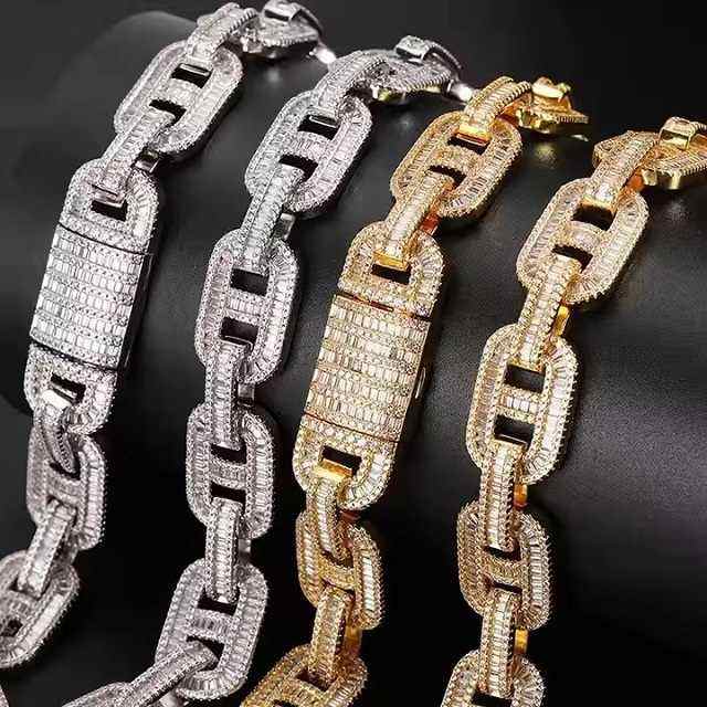 สร้อยคิวบาลิงค์เงินแท้ประดับมอสซาไนต์ทรงกลม ดีไซน์ฮิปฮอปสำหรับผู้ชาย SM JEWELS งานปาร์ตี้ อินเดีย