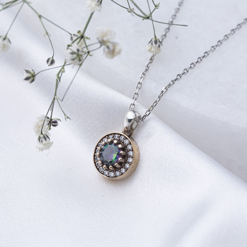จี้หินโทแพซเซอร์โคเนียแท้ทำด้วยมือเครื่องประดับเงินสเตอร์ลิง925