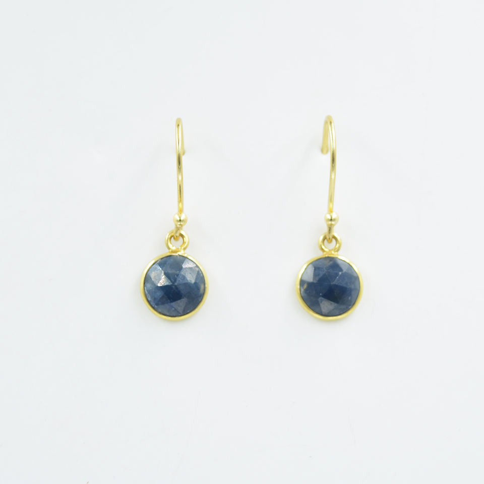 พลอยแซฟไฟร์สีน้ำเงินธรรมชาติทรงกลม925ต่างหูเงินสเตอร์ลิงทำด้วยมือชุดต่างหูแบบห้อยสำหรับซัพพลายเออร์