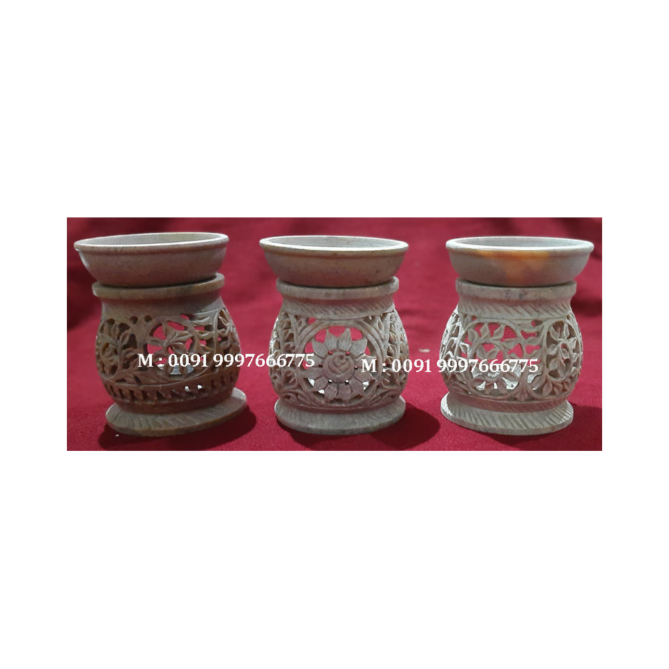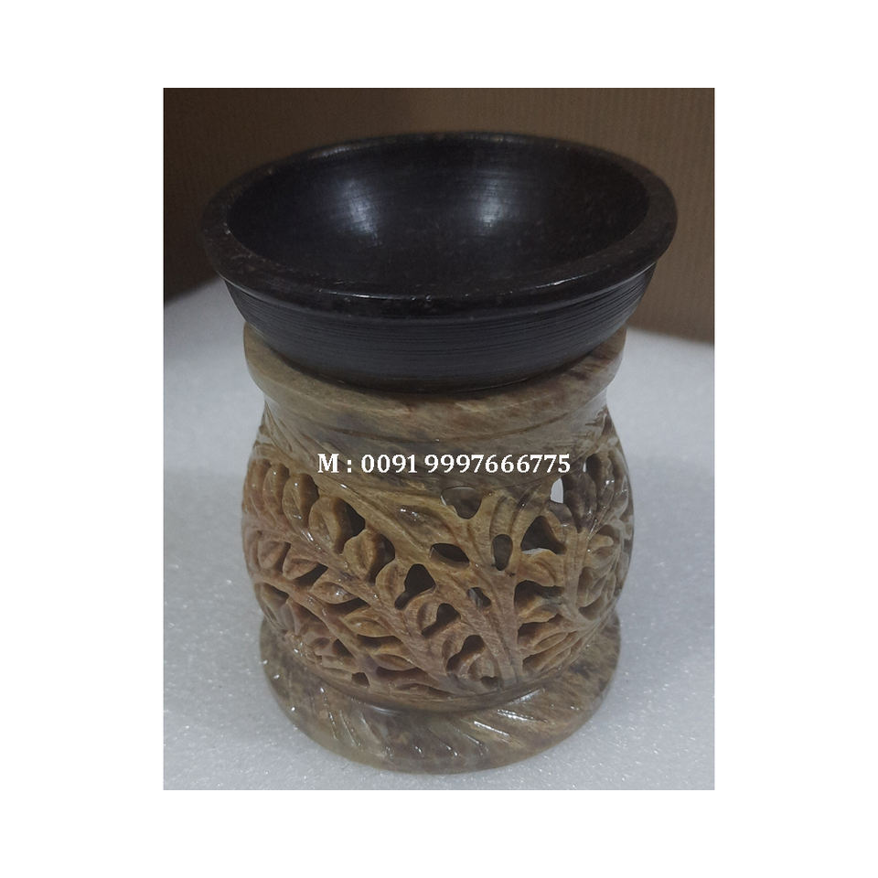 เตาเผาน้ำมันหอมระเหยทรงกลมทำจากหินธรรมชาติ แกะสลักด้วยมือ ขัดเงา ใช้สำหรับตกแต่งเทศกาลดีวาลี
