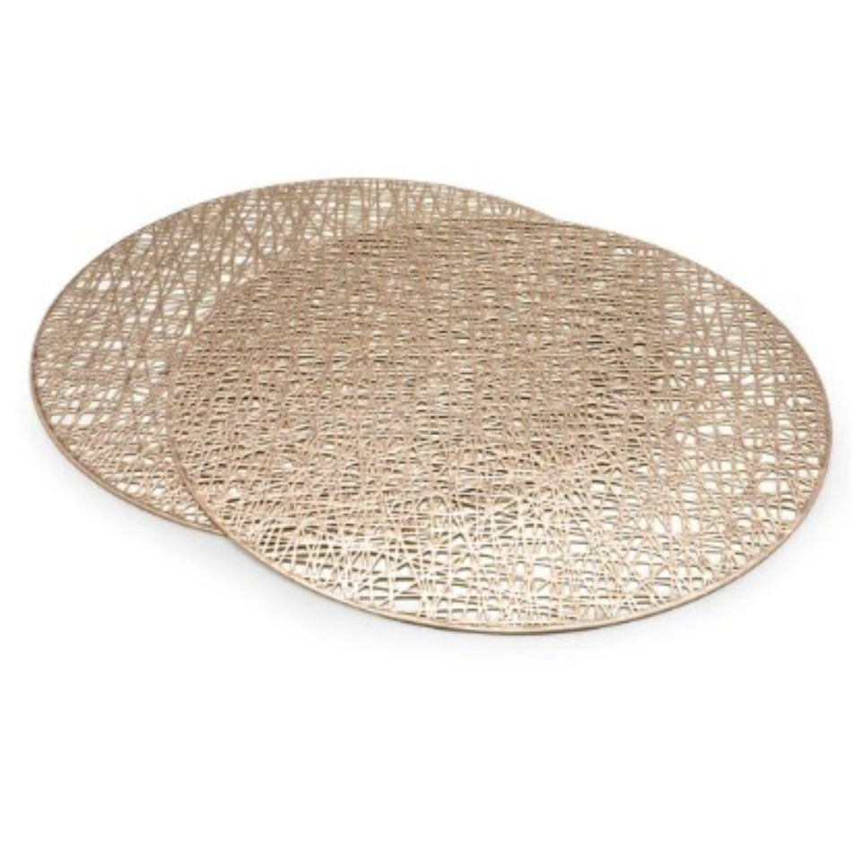 ที่รองจานโลหะสีทองรูปทรงกลมสำหรับตกแต่งในห้องครัวโต๊ะรับประทานอาหารด้านบนของบ้านโรงแรมร้านอาหาร
