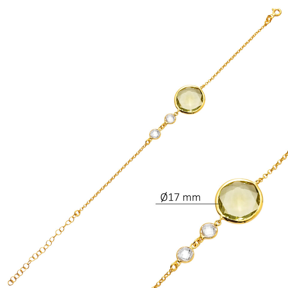 ทรงกลมOliveควอตซ์และหินCZ 22K Gold BEZELสร้อยข้อมือเงินแฮนด์เมด 925 เงินสเตอร์ลิงสําหรับผู้หญิงเครื่องประดับ