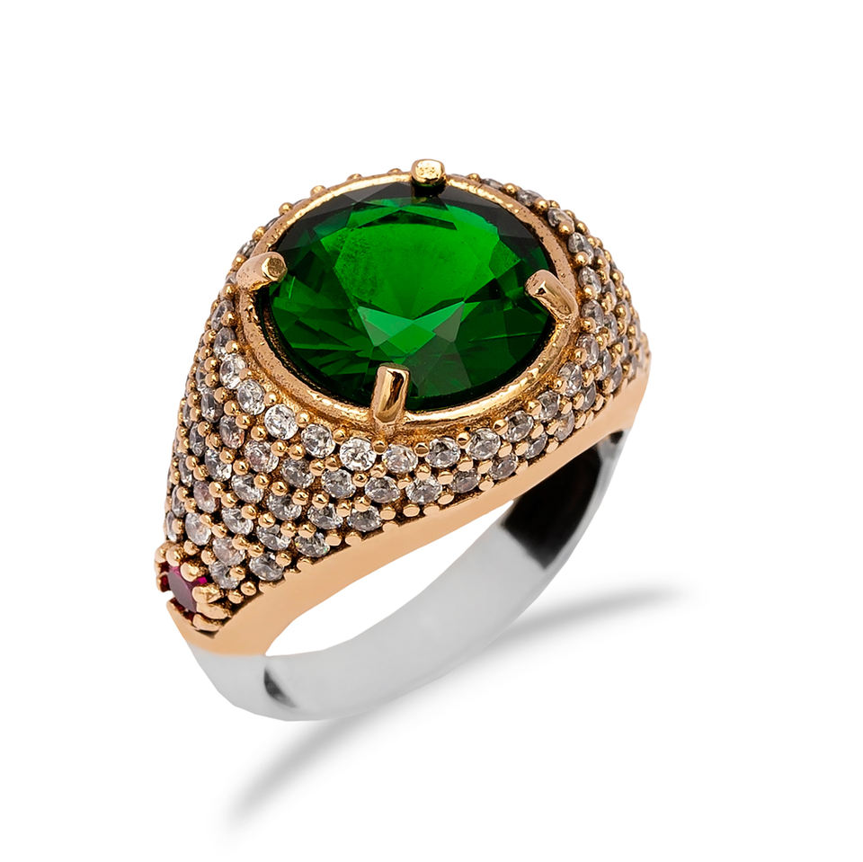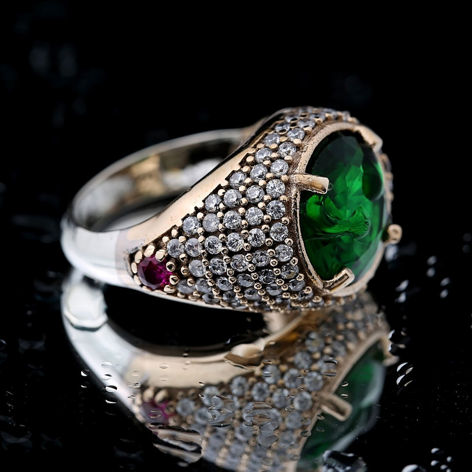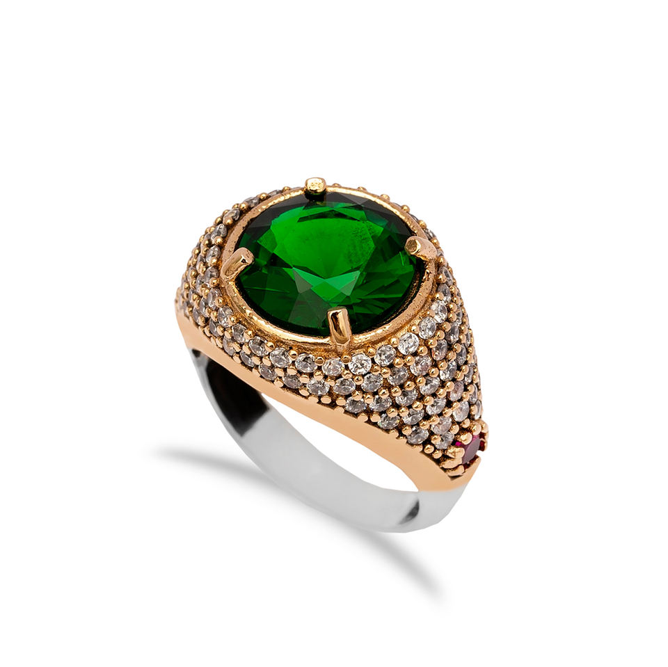 รอบรูปร่างหินไพลิน Unisex แท้แหวนตุรกีแฮนด์เมดขายส่ง925เงินสเตอร์ลิงเครื่องประดับ