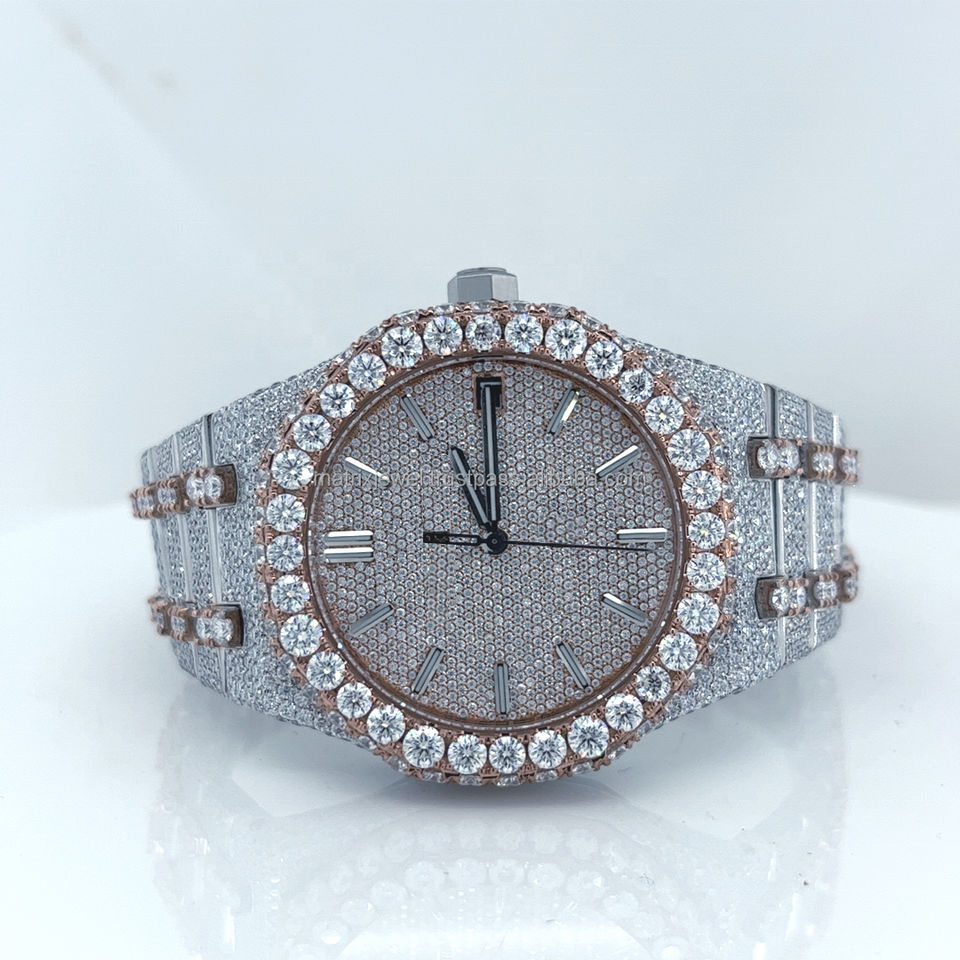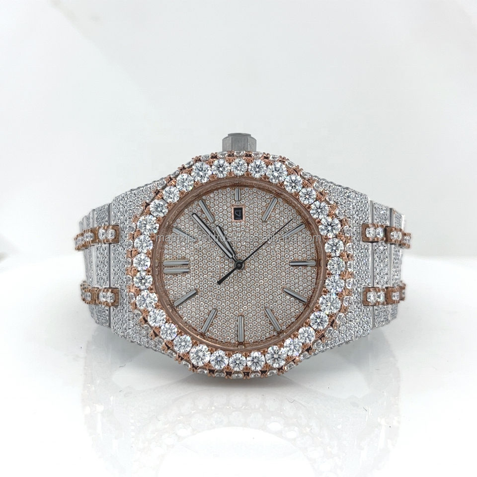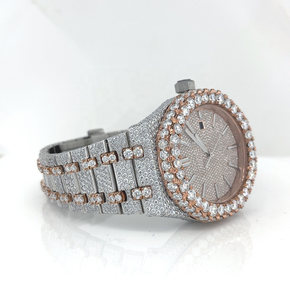 นาฬิกาประดับเพชรสไตล์ฮิปฮอปทำจากสแตนเลสสองสี VVS สีโรสโกลด์ใหม่