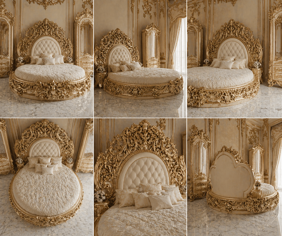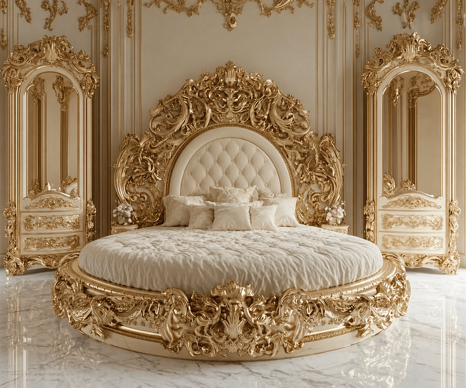 Round Shape Wooden Carved Bed for King Palace