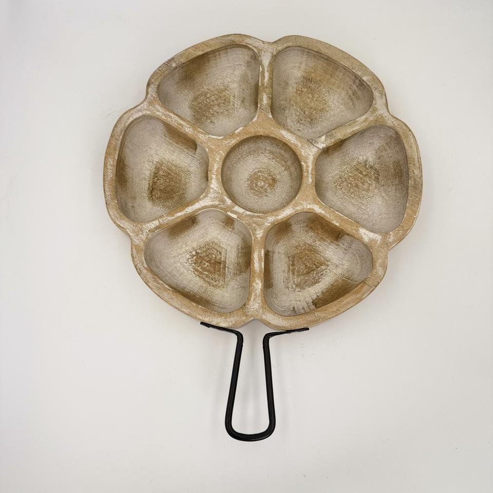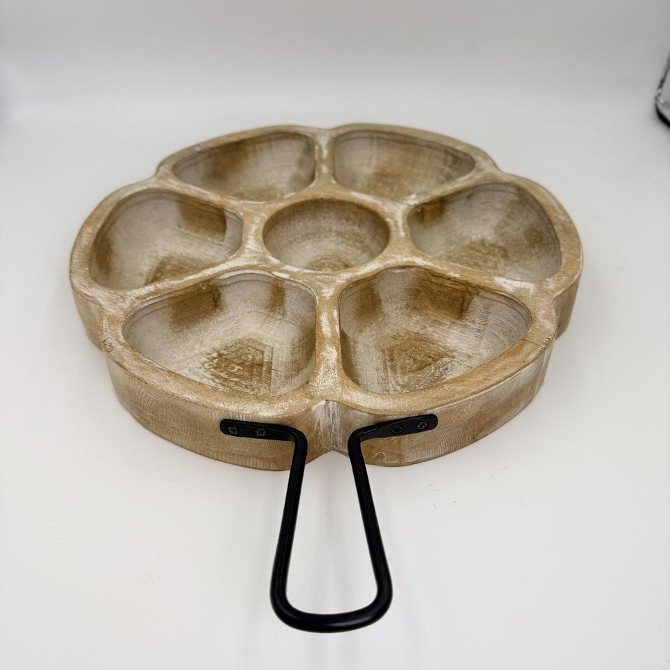 ถาดทรงกลมเคลือบสีขาวพร้อมหูจับเหล็กเคลือบสีดำ สำหรับเสิร์ฟอาหารที่บ้านหรือร้านอาหาร
