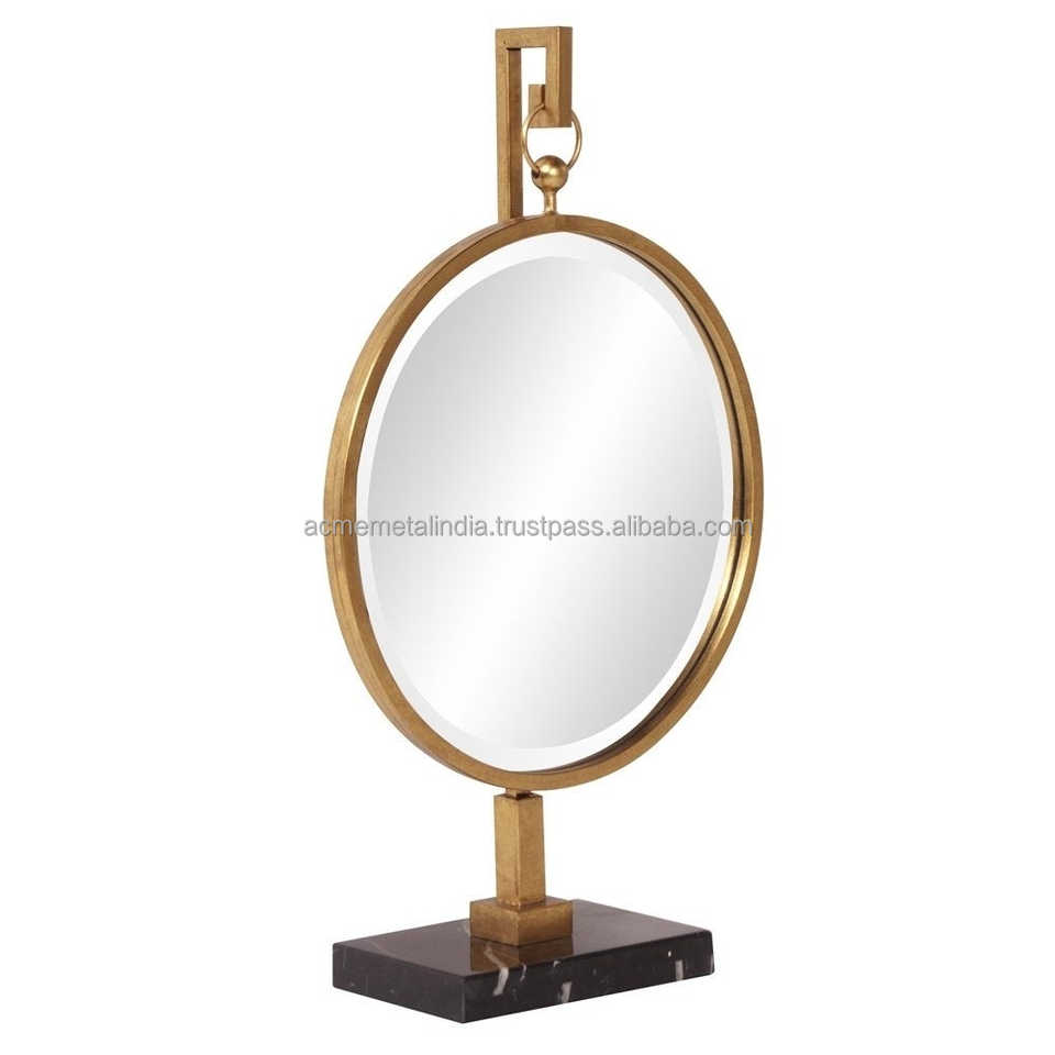 กระจกแต่งหน้าทรงวานิตี้หุ้มกรอบอะลูมิเนียมชุบทอง ดีไซน์หรูหราสำหรับใช้ในบ้าน เหมาะสำหรับแต่งหน้าและโกนหนวด
