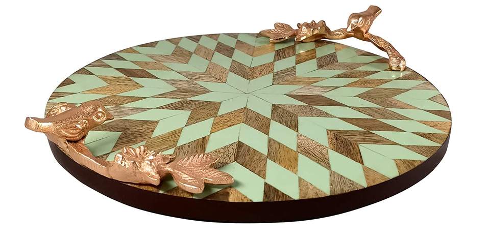 ถาดไม้ทรงกลมสำหรับตกแต่งบ้านร้านอาหารบาร์เครื่องครัวตกแต่งโต๊ะทำในอินเดีย