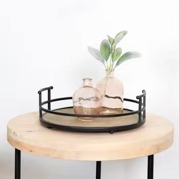 ถาดไม้ทรงกลมสำหรับเสิร์ฟอาหารดีไซน์ใหม่ถาดไม้หรูหราสำหรับเสิร์ฟในบ้านห้องครัวโรงแรมและร้านอาหาร
