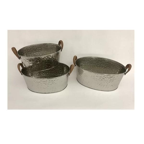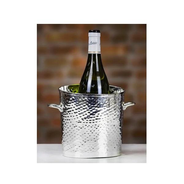 ถังแช่ไวน์สแตนเลสทรงกลมแบบตอกลาย พร้อมหูหิ้ว สำหรับใส่ไวน์ขวดเดียว ใช้ตกแต่งงานปาร์ตี้
