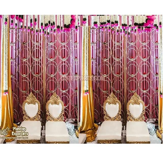 ผนังเทียนโลหะทรงกลมสำหรับงานแต่งงาน ผนังเทียนสำหรับเวทีงานแต่งงานที่สวยงามที่สุด ผนังเทียนโลหะสุดตระการตาสำหรับงานเลี้ยงต้อนรับในเท็กซัส