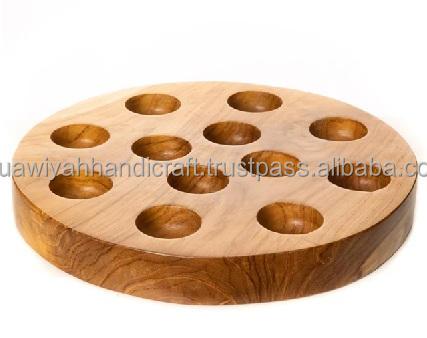 ถาดไข่ไม้ทรงกลมสำหรับเครื่องครัวถาดไข่ตกแต่งบนโต๊ะในบ้าน