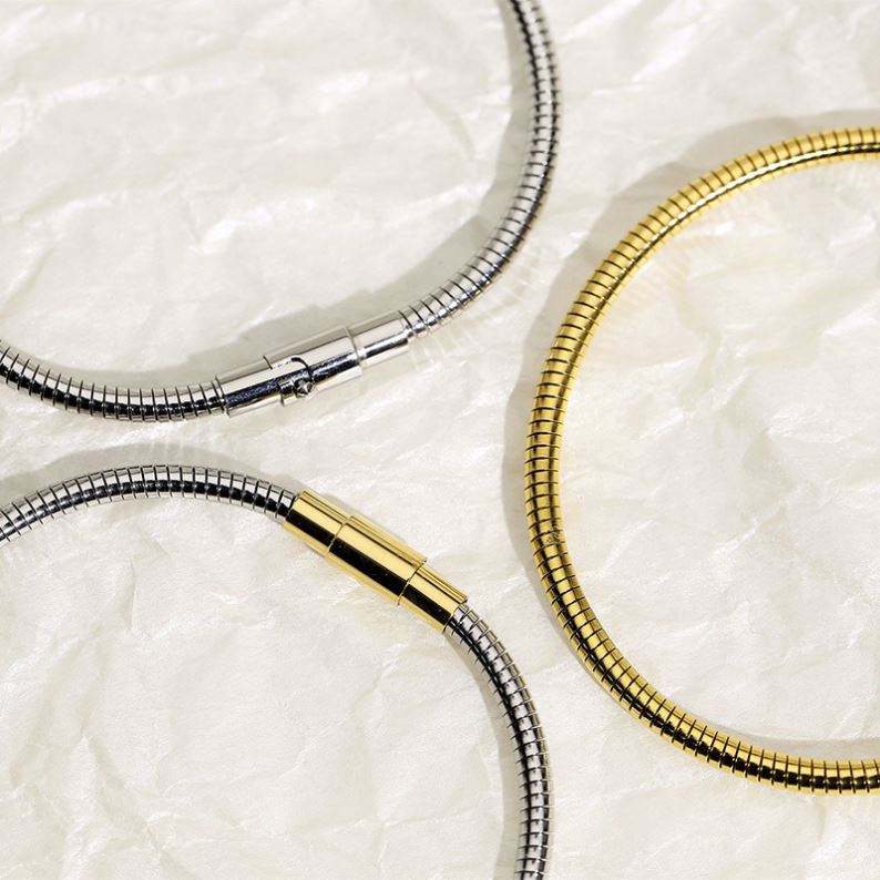 โซ่งูกลมสร้อยข้อมือสแตนเลสยืดหยุ่นขนาดเล็กสำหรับผู้หญิงหัวเข็มขัดแบบกดประดับไทเทเนียมเครื่องประดับมือขายส่ง