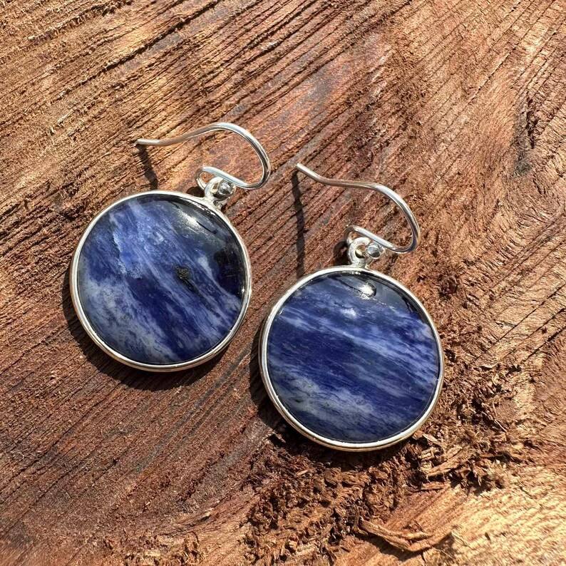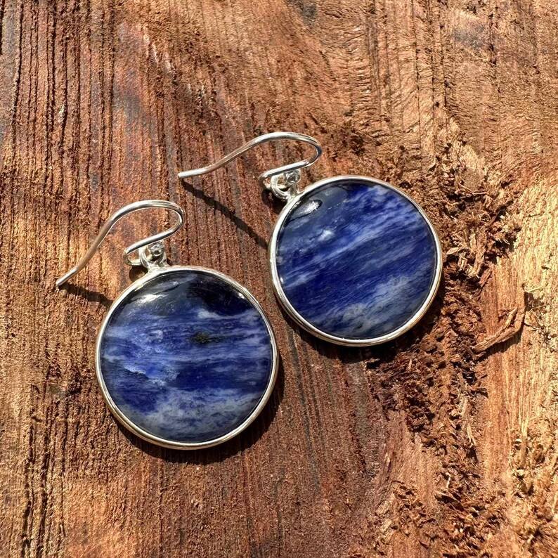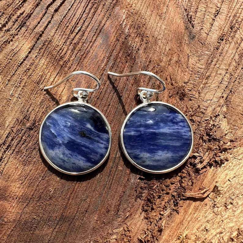 ต่างหูห้อยทำมือจากหินโซดาไลต์