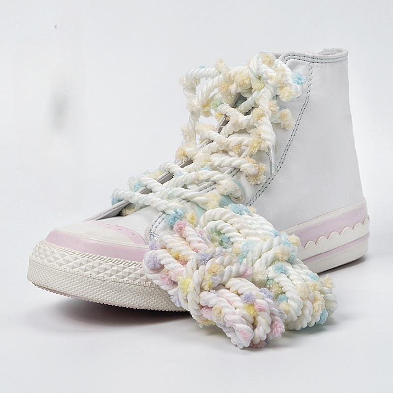 เชือกรองเท้าแบบกลม นุ่ม สีสันสดใส ยืดหยุ่น สำหรับรองเท้าผ้าใบ รองเท้าลำลอง รองเท้ากีฬา - เชือกรองเท้าแฟชั่นถักจากเส้นด้ายฟู