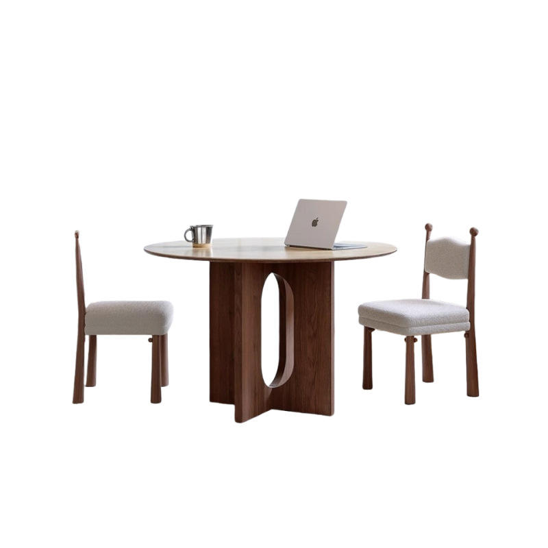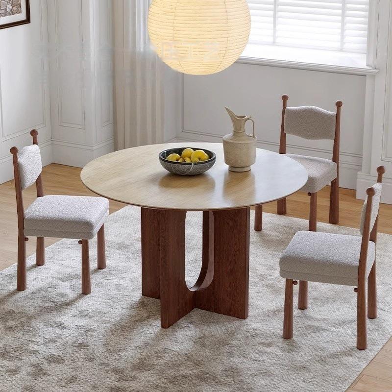 โต๊ะรับประทานอาหารไม้เนื้อแข็งทรงกลม 1.2 ม. 1.35 ม. 1.5 ม. โครงสร้างกล่องที่มั่นคงสำหรับห้องรับประทานอาหาร