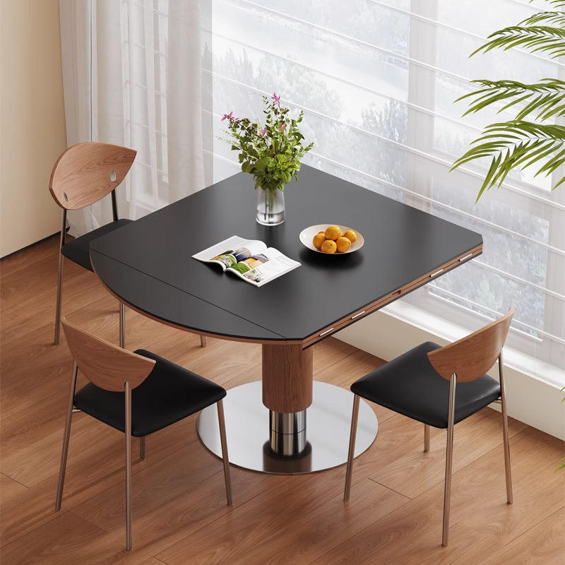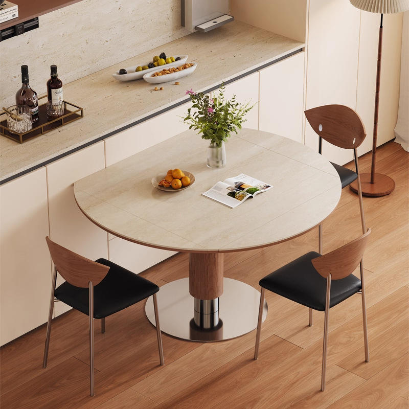 Round Solid Wood Dining Table Convertible Design For Dining Room Modern Style