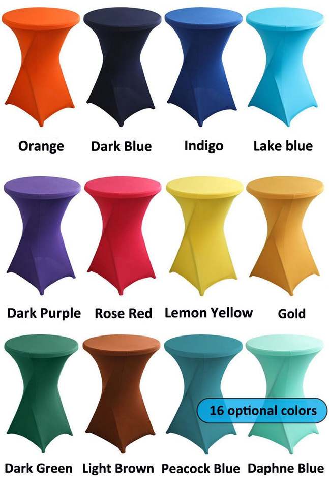 โต๊ะค๊อกเทลผ้าสแปนเด็กซ์ทรงกลมยืดหยุ่นพอดีตัวยืดได้ผ้าคลุมโต๊ะค็อกเทลบาร์ปาร์ตี้สั่งทำได้