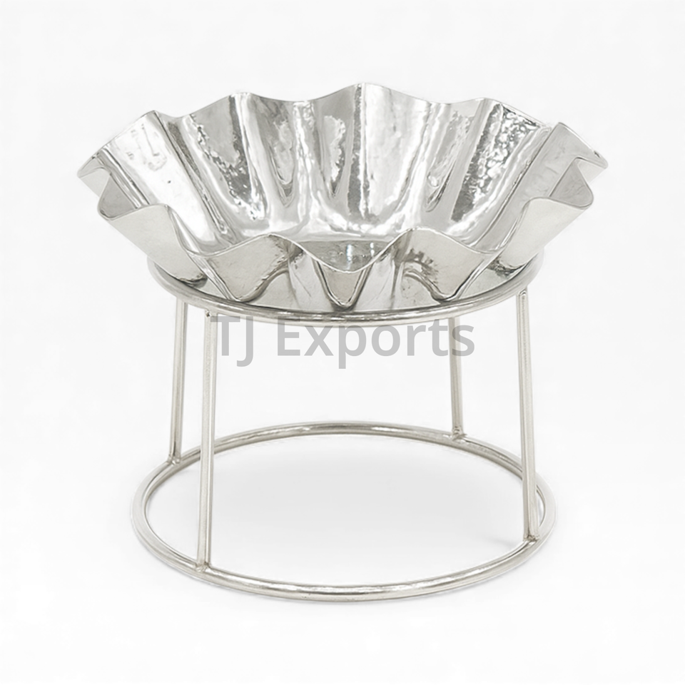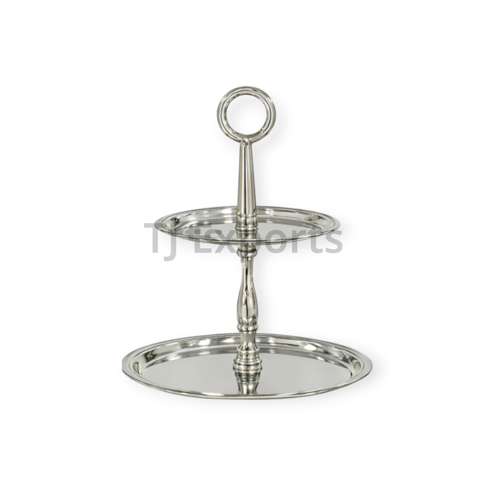 จานเสิร์ฟช็อคโกแลตทรงกลมสแตนเลสพร้อมหูจับแบบวงแหวน ออกแบบมาเพื่อการนำเสนอที่หรูหราสำหรับโรงแรมและงานเลี้ยง