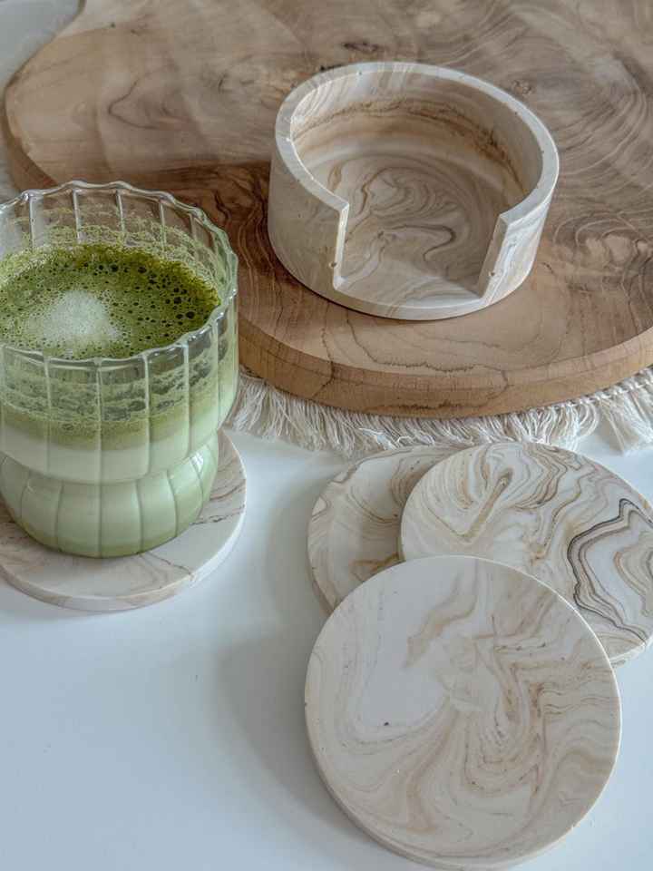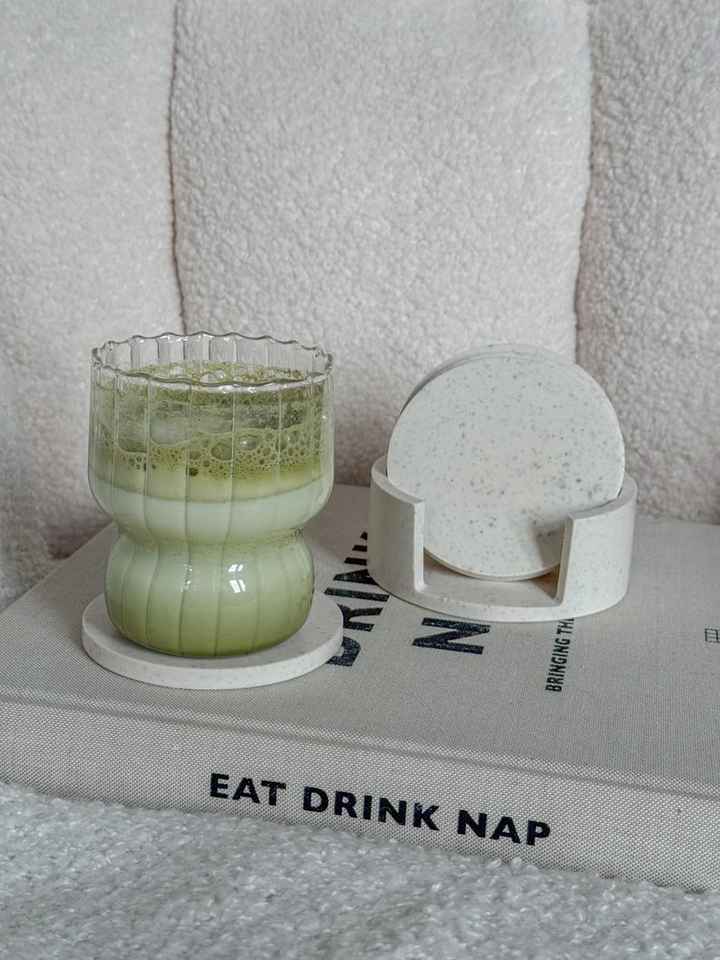 Round Stone Coasters with Holder Minimal Modern Coffee Table Decor