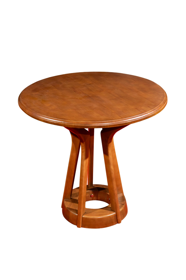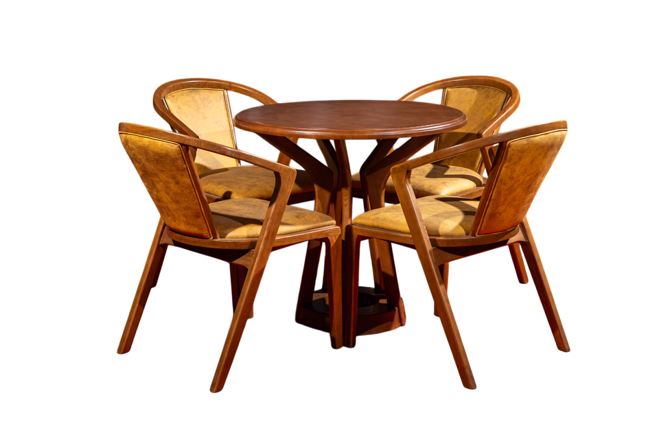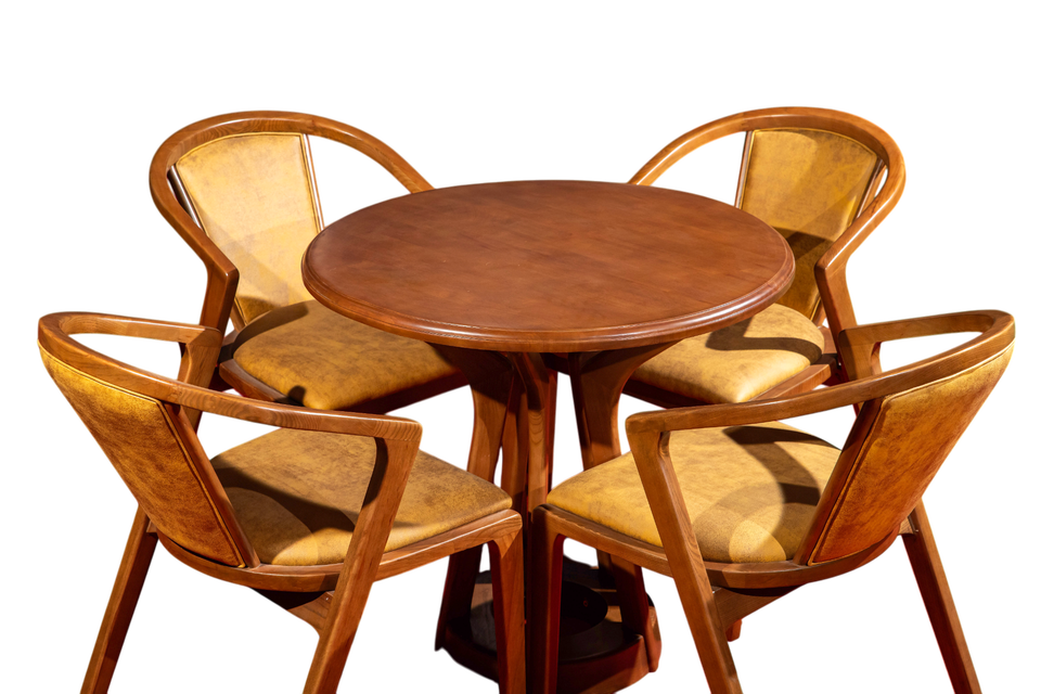 โต๊ะไม้พื้นทรงกลมพร้อมไม้ยางพารา5ขาเก้าอี้เถ้าแท่นรองรับสีวอลนัทสำหรับเฟอร์นิเจอร์บ้าน