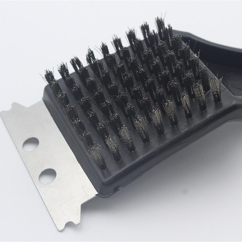แปรงลวดเหล็กหางกลมพร้อมที่ขูดอเนกประสงค์สำหรับทำความสะอาดบาร์บีคิว ด้ามจับพลาสติกทนทาน