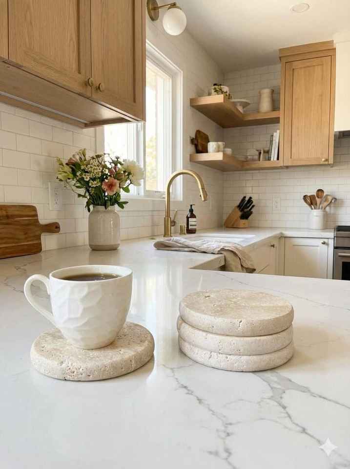แผ่นรองแก้วหินอ่อนทรงกลมทำมือจากหินธรรมชาติสำหรับกาแฟ ชา ตกแต่งบ้าน