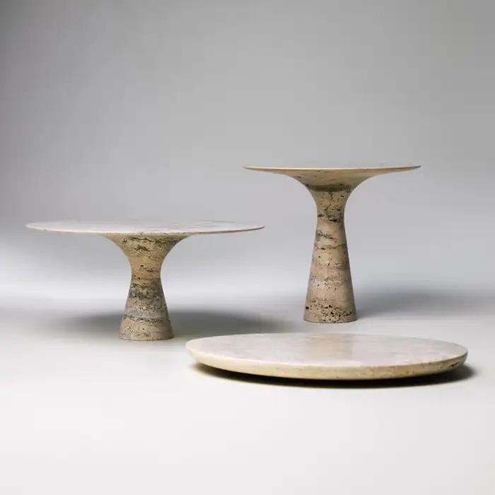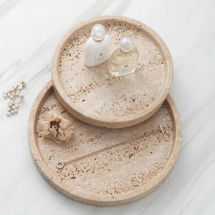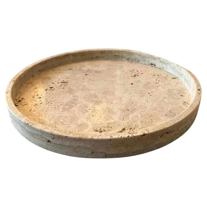 ถาดหินอ่อนทรงกลมสำหรับตกแต่ง พร้อมพื้นผิวธรรมชาติและขอบยกสูง สำหรับการตกแต่งบ้านสไตล์โมเดิร์นและการจัดแสดง